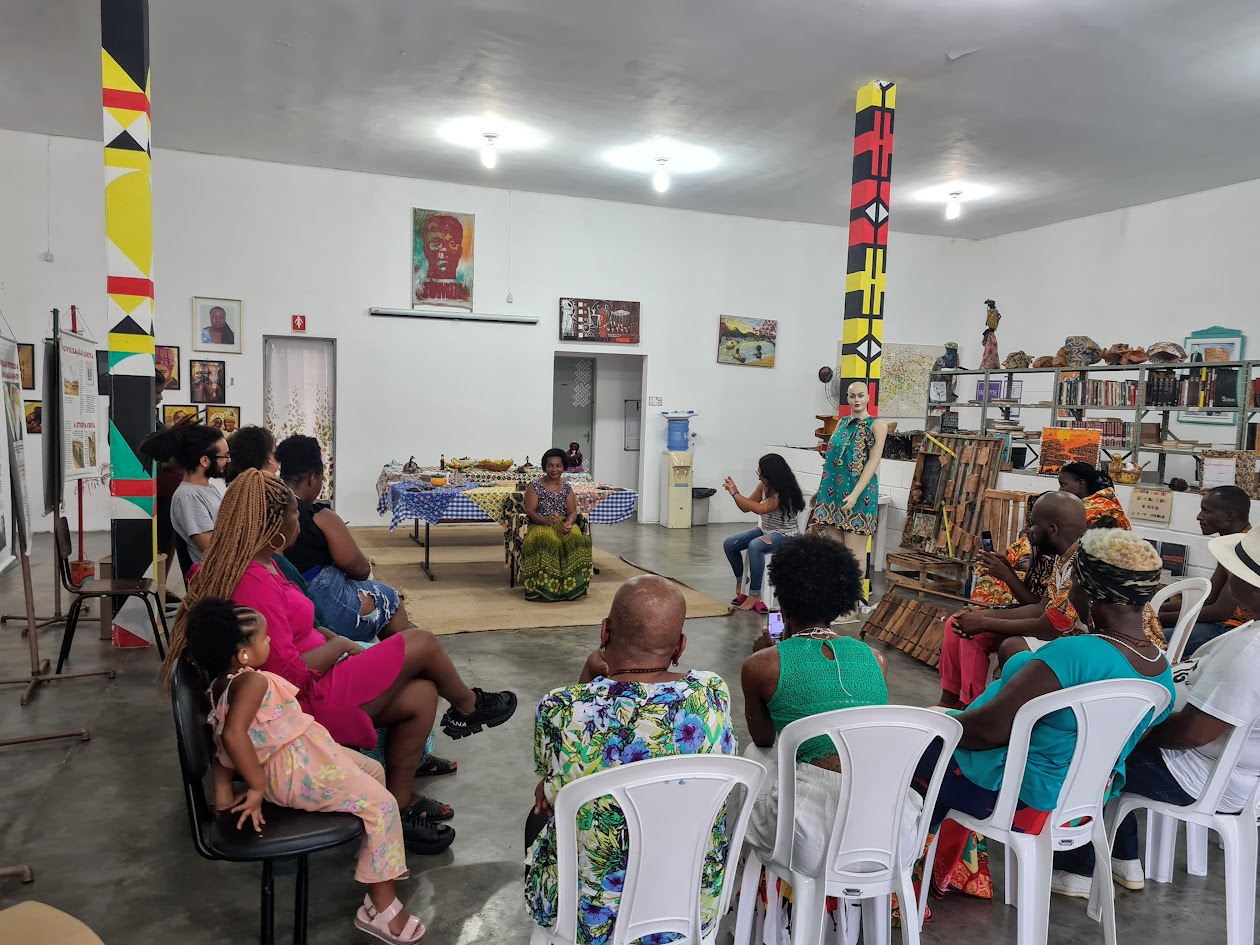 Um dia de imersão na Cultura Afrobrasileira no Centro Cultural Afrobrasileiro e Biblioteca Zumbi dos Palmares na cidade de Taubaté – SP, com uma deliciosa oficina de estamparia em tecidos com motivos africanos, exposição afro-brasileira, pratos da gastronomia afro-brasileira, roda de conversa com os Reis Congos Mestres da Cultura Popular e ainda uma deliciosa oficina de dança moçambicana com a Cia de Dança Rota da Liberdade.